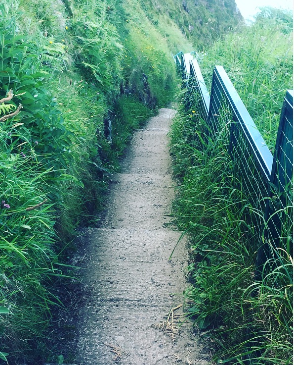 The cliff path quickly turns to stairs . There are a lot of steps so be prepared to hike back up.